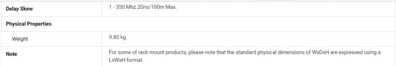 - Delay Skew: 1 ~ 350 MHz 20nS/100m Max.