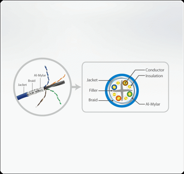 The 2L-2910 utilizes SF/UTP design with four unshielded 23 AWG twisted pair conductors. Among the four unshielded twisted pair conductors, there is one cross filler to reduce cross talk. Most importantly, the cable meets the requirements set by ANSI/ TIA-568-C.2 (2009) ensuring high performance in electrical transmission.