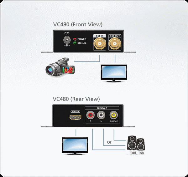 The VC480 3G/HD/SD SDI to HDMI Converter provides a professional way to exchange high definition signals in real time. The SDI and HDMI signal conversion is 100% digital and guarantees no loss of quality for both the audio and video transmission. The VC480 is the most dependable way to convert signals with confidence when monitoring in any post or broadcast application.