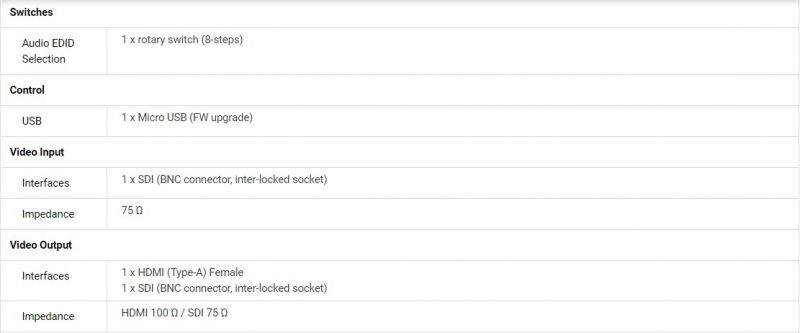 - Supports SDI standard SMPTE-292/424/425-3/2081/2082