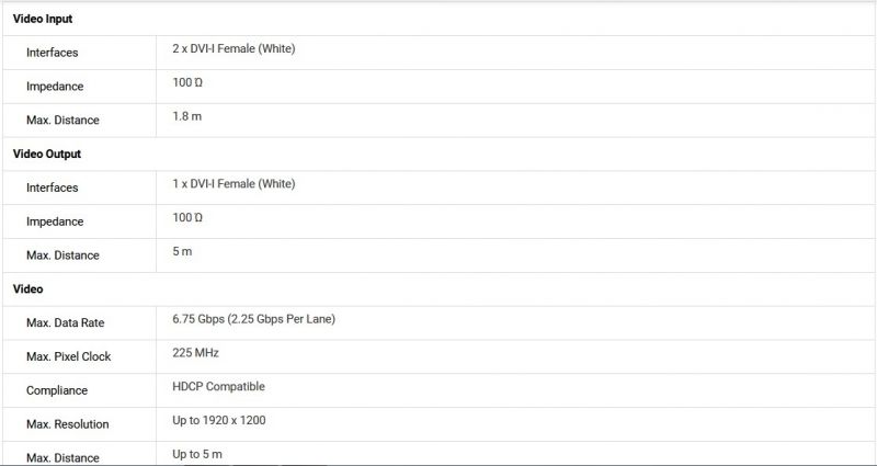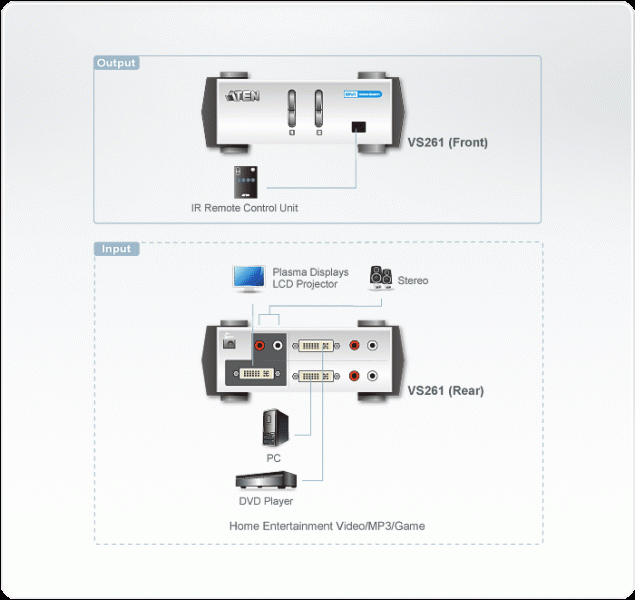 The VS261 improves upon previous designs by supporting Single Link DVI (Digital Video Interface), providing superior video quality up to 1920 x 1200. DVI supports both digital video input (flat panel displays, data projectors, plasma displays, digital TVs and set-top boxes) and analog video input (traditional monitors and TVs)