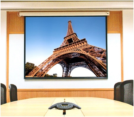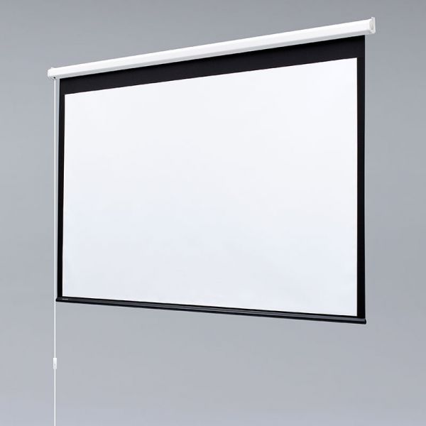 No electrician is required for the Baronet wall- or ceiling-mounted, electric projection screen. End caps form universal mounting brackets for easy installation. Just install the electric screen and plug the power cord into the nearest wall outlet. This free-hanging, fiberglass-backed projection screen maintains flatness thanks to the weight of the screen and bottom dowel. The attractive, slender pentagonal case design is scratch-resistant and fits into most spaces housing a quiet, trouble-free motor-in-roller.