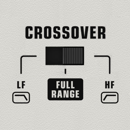- Built-in stereo crossover with low-cut, high-cut and full range mode
