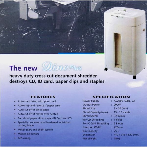 - Auto cut-off if motor over heated Can shred paper clips, staples ID Card and CD