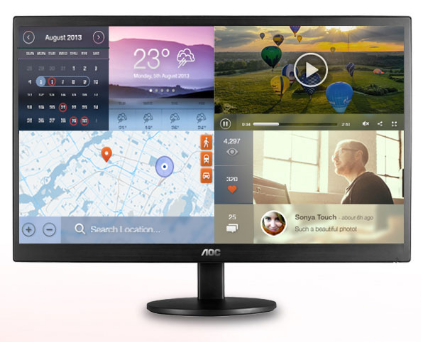 This 18.5” AOC display conveys a sophisticated look with its brushed surface texture and Ultra Narrow Bezel, making it an attractive solution for any home or office setting. The E970SWNL offers a 20,000,000:1 Ultra-high Dynamic Contrast Ratio, providing incredible depth and image detail. The Hg-free LED backlight panel found in the 70 Series eliminates poisonous toxins that are found in Mercury based monitors, making this an environmentally friendly choice. It also offers Ultra Low Power Consumption for 50 percent less energy use, plus e-Saver and Screen+ software and i-Menu technology.