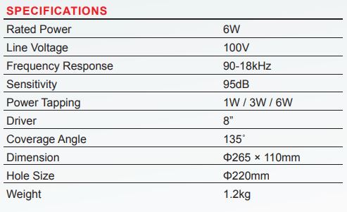 EMIX EMCS-831 8 inch ceiling speaker is designed and built with a white ABS plastic enclosure which offers both