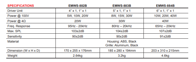 EMIX Wall Mount speaker offer a combination of quality, performance and innovation in public address. It is designed for situation where both quality speech and music reproduction typically is fix-installed in conference rooms, community centers, F&B outlet and multipurpose halls.