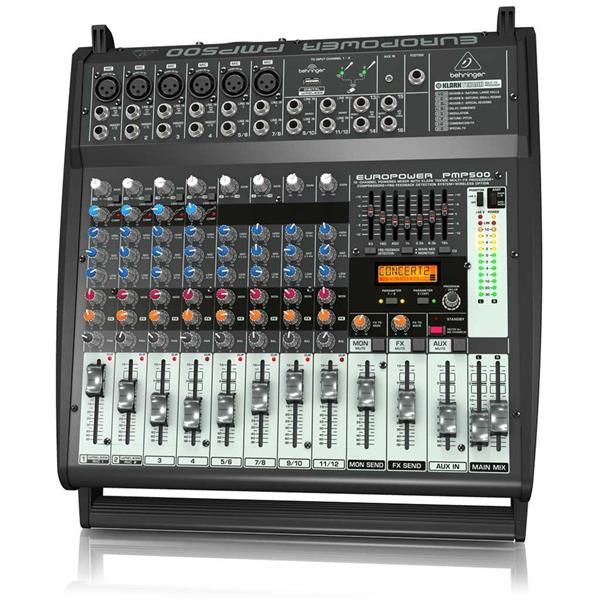 The amazing PMP500 Powered Mixer packs tremendous power (2 x 250 Watts, selectable as stereo or dual mono), while maintaining an incredible power-to-weight ratio. These mixers employ high-efficiency Class-D technology and a state-of-the-art switch-mode power supply, which significantly reduces weight and heat. The 12-channel PMP500 features 6 high-quality mic preamps (2 of which also accept our ULM Digital Wireless Microphones, available separately), our “one-knob” compressors, 4 stereo channels, plus 2 additional stereo inputs and 1⁄8″ Aux Input for the maximum in versatility. To round out this phenomenal feature set, we added a KLARK TEKNIK 24-bit Multi-FX processor with 32 awesome presets, including studio-class reverbs, delays, pitch shifter and various multi-effects with dual-addressable parameters, Tap function and storable user parameter settings – and a 7-band stereo graphic EQ with our proprietary FBQ Feedback Detection System – for the ultimate in feedback-free performance.