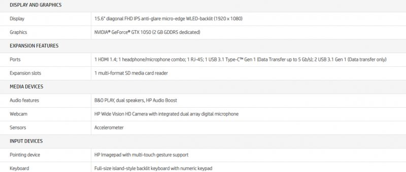 - NVIDIA® GeForce® GTX 1050 (2 GB GDDR5 dedicated)