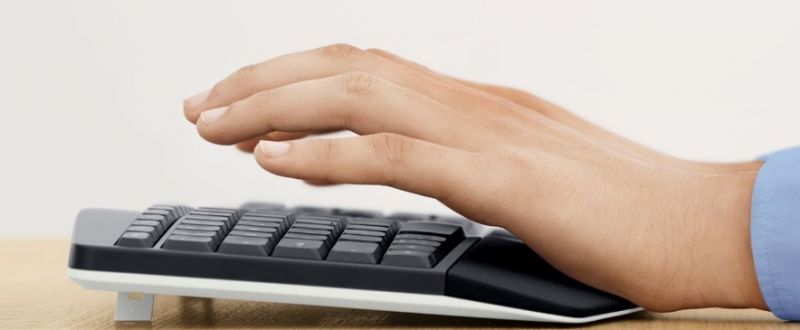 The oversized, cushioned palm rest and curved keyframe gives you support for all-day typing. Adjustable tilt legs offer the perfect typing angle. And the contoured design and soft rubber surface of the mouse fits comfortably in your palm.