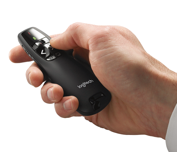 No software needed, just plug the receiver into a USB port and you’re ready to go. And when the show is over, you can store the receiver in the presenter.
