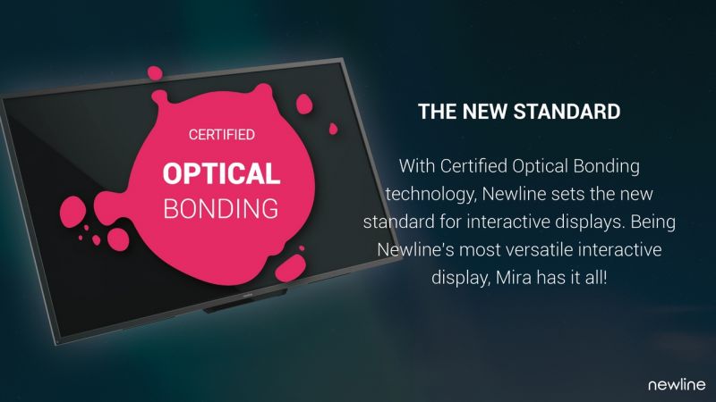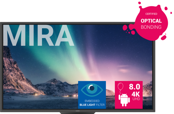 - MIRA focuses on bringing users a unified and collaborative working experience. Optical Bonding and advanced IR touch enable exceptional touch accuracy and a true 178 degree viewing angle.
