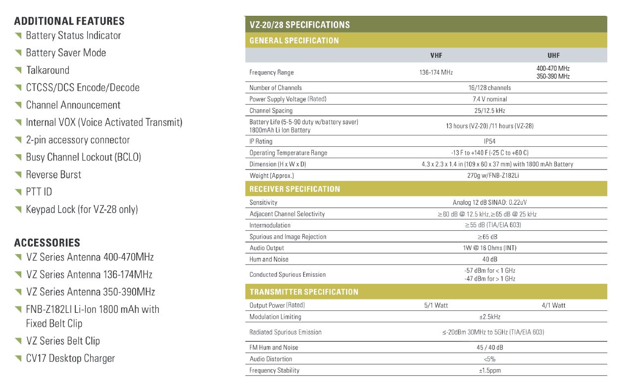 For the VZ-28 model, up to 128 channels can be stored either through programming software, or front panel. This provides conveniences to the users, avoiding the need to frequently program the radio.