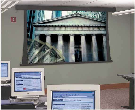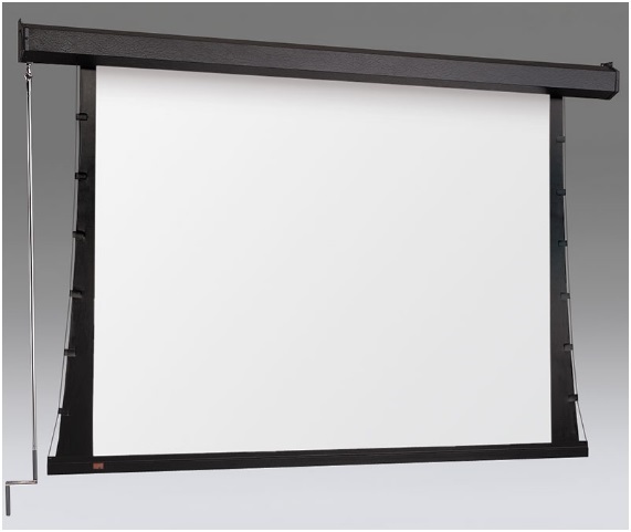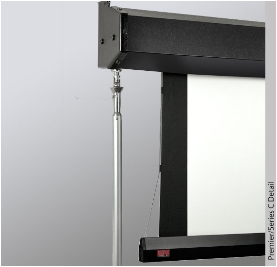 The crank-operated Premier C wall-or ceiling-mounted, tab-tensioned projection screen features a crank handle for enhanced screen security. The detachable crank handle provides an added benefit of limiting screen access within educational or business-related environments. Tab-tensioned screens provide a perfectly flat viewing surface with better image quality. Draper’s RF welded tabs create a more durable seal that eliminates separation and stickiness.