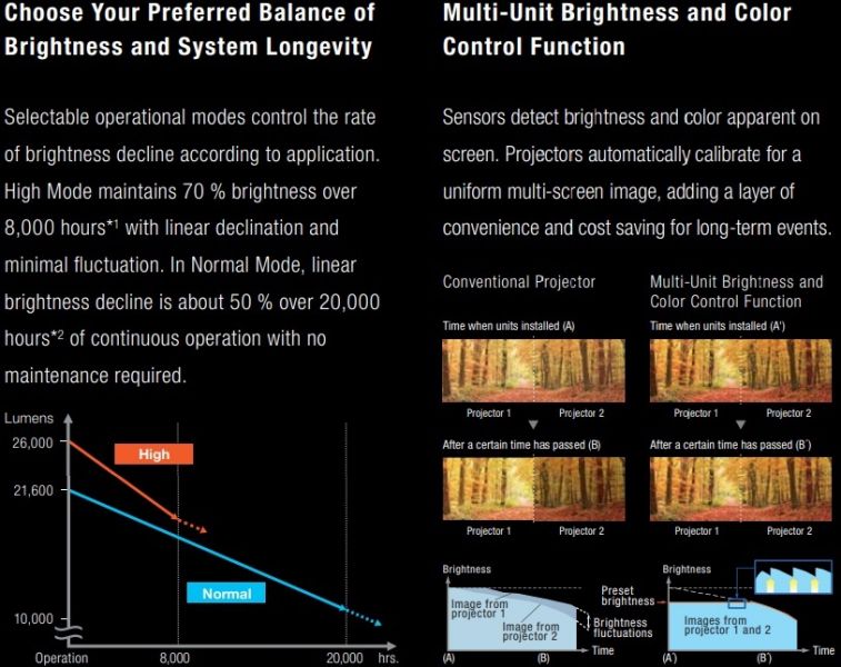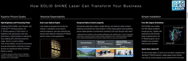 - Ultra-bright 27,000 lm 3-Chip DLP SOLID SHINE laser projection.