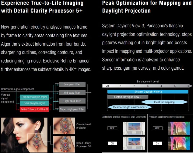- System Daylight View 3 ensures sharp images for projection mapping applications and bright environments.