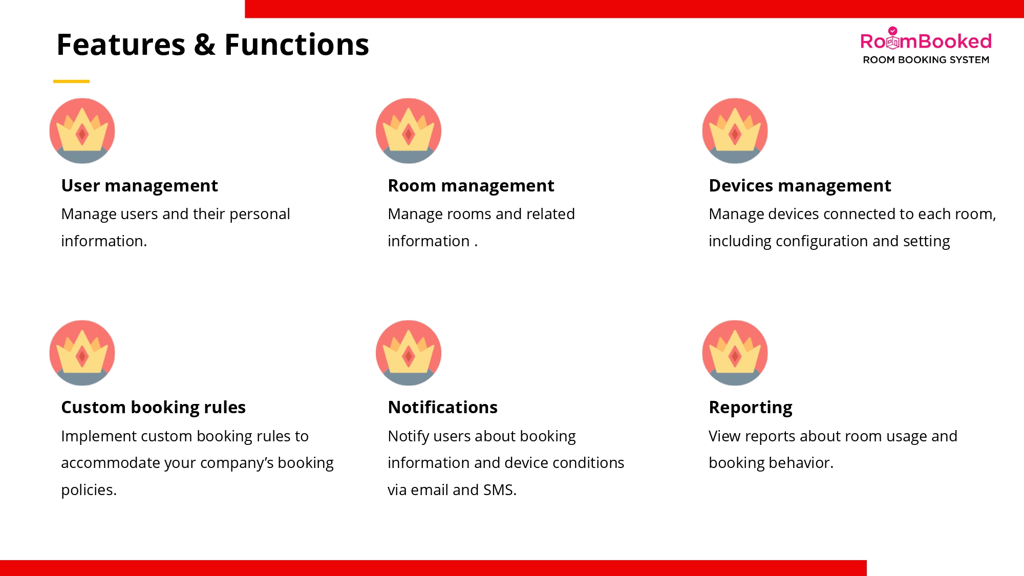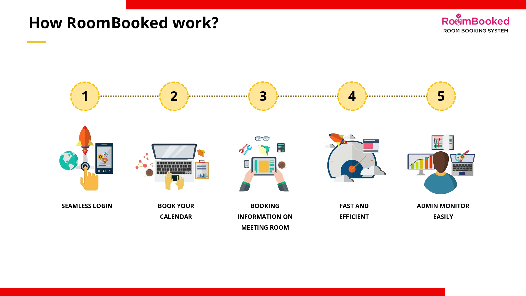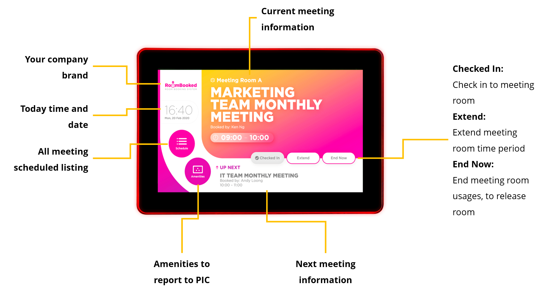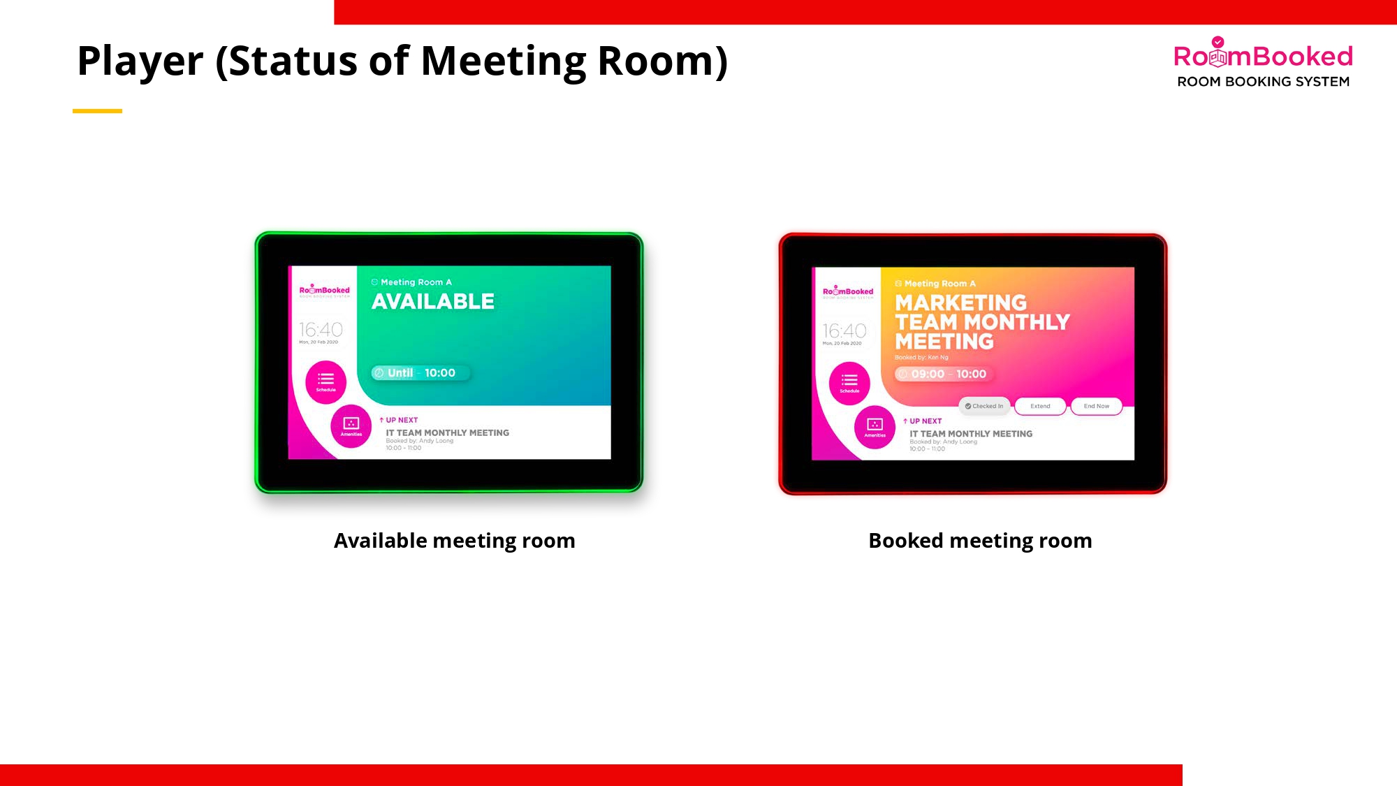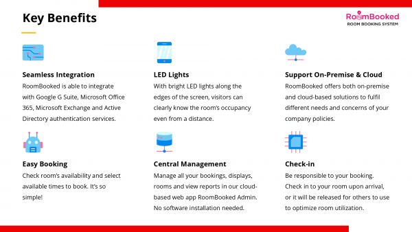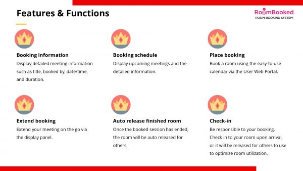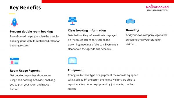 RoomBooked is a simple and effective solution for booking and scheduling rooms and spaces. You can easily book a room simply by choosing your preferred date and time. Booking schedule will be shown on the display panel placed at the room.