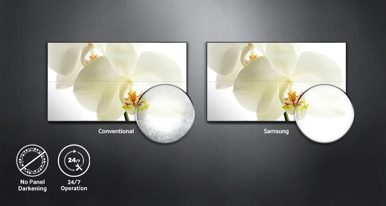 - Samsung’s UHF5 Series video walls overcome many common user challenges to ensure unwavering 24/7 performance. Through exhaustive testing, Samsung’s video wall panels are reinforced to shield screens against panel darkening.
