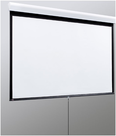 - High-quality, spring-roller projection screen can be wall- or ceiling-mounted.