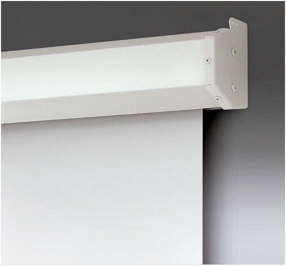 The wall or ceiling-mounted, Targa electric projection screen is a popular choice for auditoriums, conference and lecture halls, hospitals, hotels and boardrooms. Housed in a pentagonal steel case with matching endcaps that form universal mounting brackets makes installation of the Targa easy, whether wall or ceiling-mounted. This free-hanging, fiberglass-backed projection screen maintains flatness thanks to the weight of the screen and bottom dowel. The motor is mounted inside the roller providing a clean, low-profile appearance.