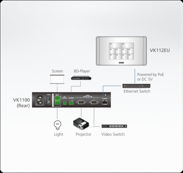 - Key pad – provides physical connection to the ATEN Control System