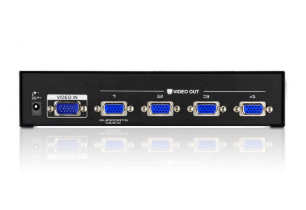 The VS134A Video Splitter is a boosting device that duplicates a video signal from one source to 4 output devices. Cascadable to three levels, the VS134A provides up to 64 video signals, in addition to extending transmission distance up to 30 m, making it excellent for public broadcast systems.