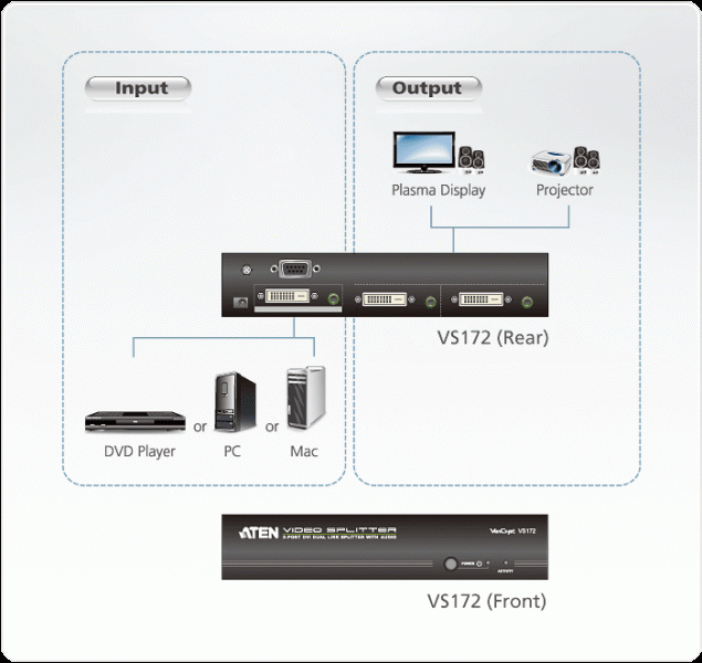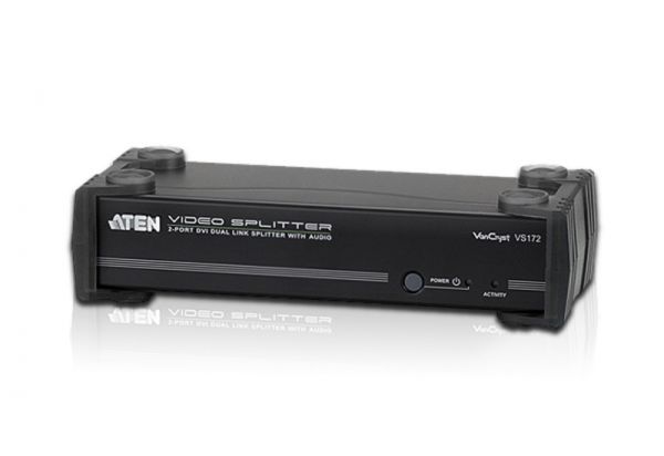 The VS172 2-Port DVI Dual Link Splitter with Audio combines DVI quality video and audio, taking signals from an audio/ video source and replicating them to two audio/video outputs. This video splitter uses dual link technology, which offers high bandwidth capacity for added transmission power and faster refresh rates, thereby providing better video quality of viewing resolutions up to 2560 x 1600.