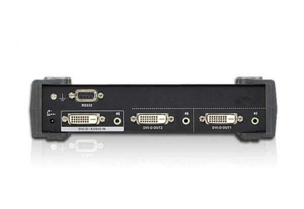 - Displays DVI audio/video to multiple DVI-compatible monitors or projectors