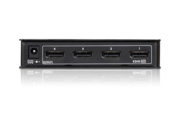 - Connects one DisplayPort source to two or four DisplayPort monitors
