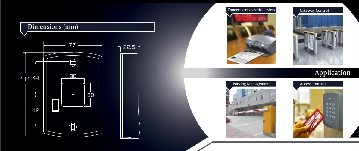 12 numeric soft-feel keypad with bicolor LED and buzzer indicator. LED change color (green and red) with buzzer’s beep sound to indicate reader status. This a low budget and best value reader to meet wide range of application requirement.